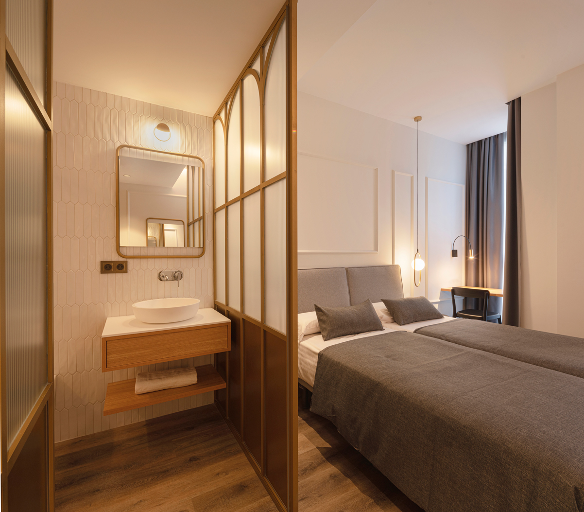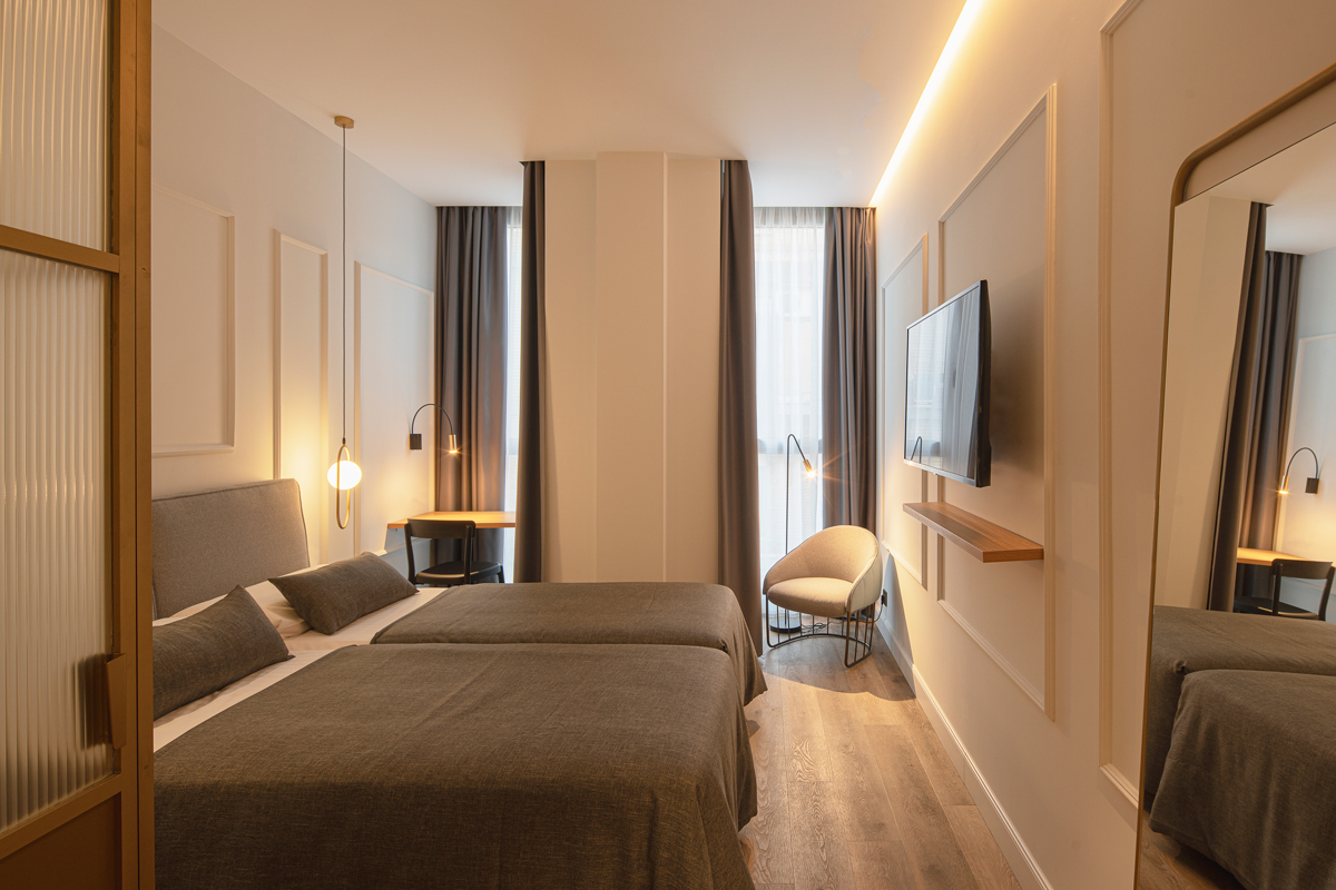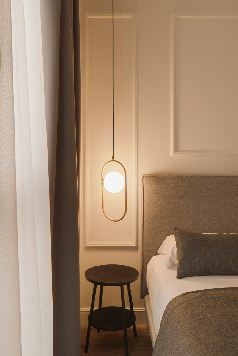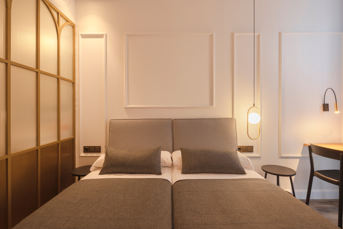 Molduras delicadas, detalles dorados y mobiliario diseñado a medida aportan equilibrio entre elegancia y sencillez. El resultado es un espacio sofisticado y acogedor, pensado para ofrecer una experiencia única que conecta la identidad de la ciudad con la calidez de un hotel boutique.