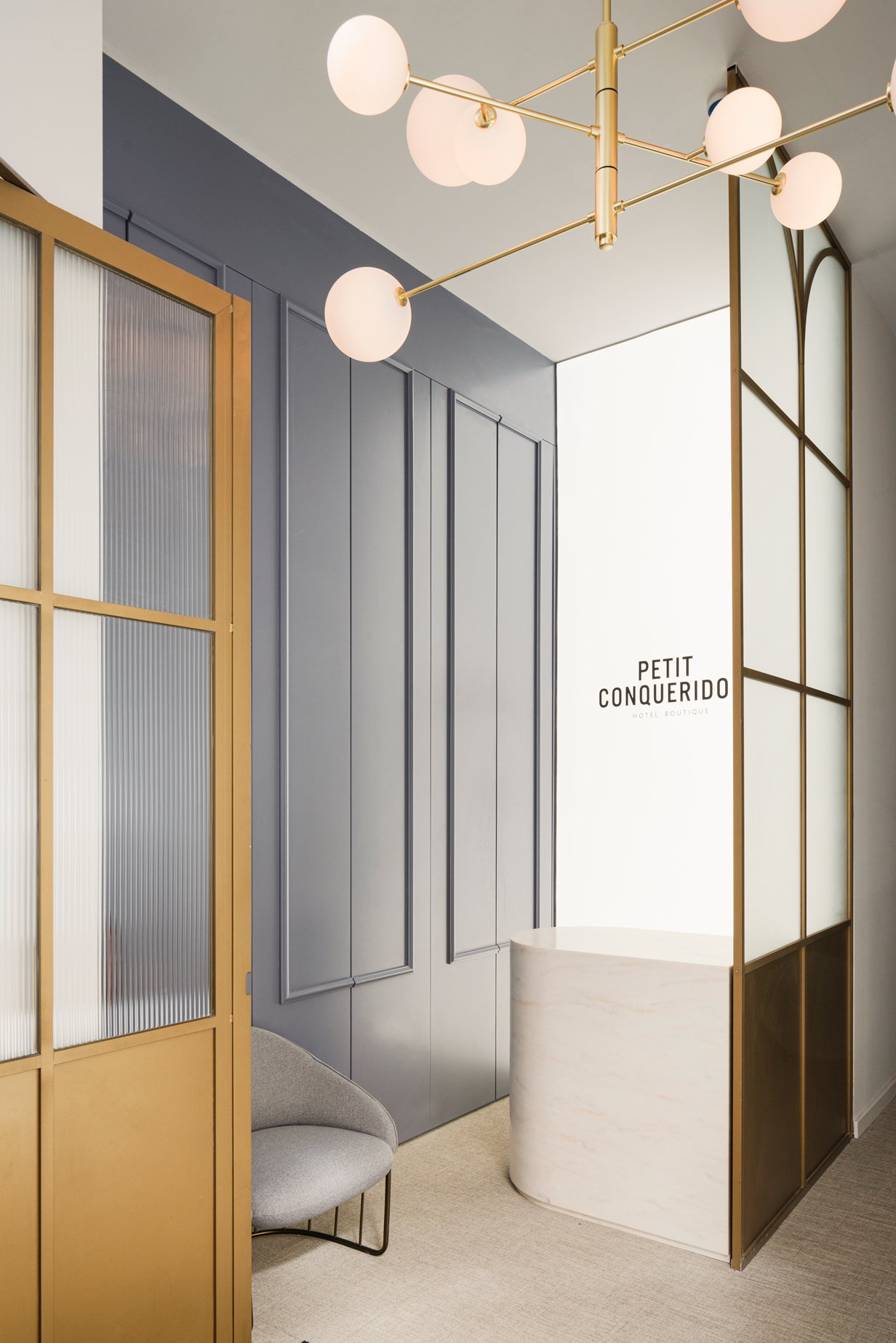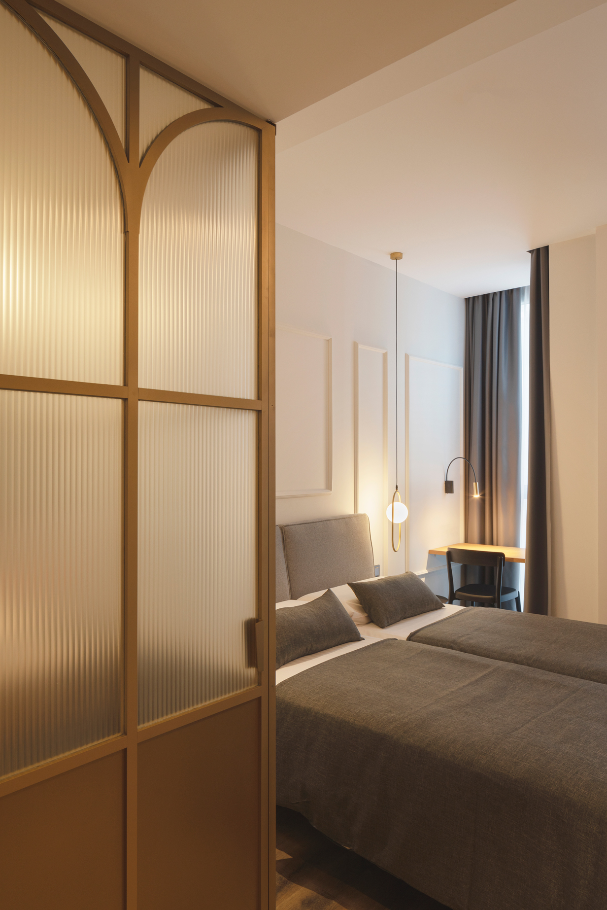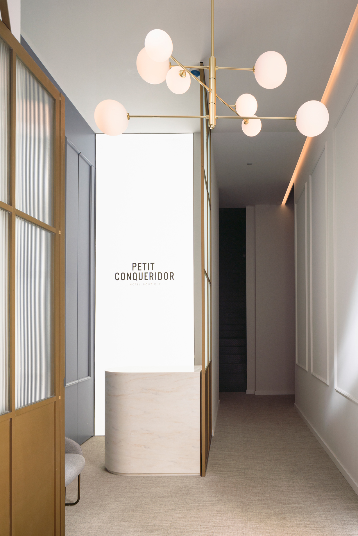 Molduras delicadas, detalles dorados y mobiliario diseñado a medida aportan equilibrio entre elegancia y sencillez. El resultado es un espacio sofisticado y acogedor, pensado para ofrecer una experiencia única que conecta la identidad de la ciudad con la calidez de un hotel boutique.